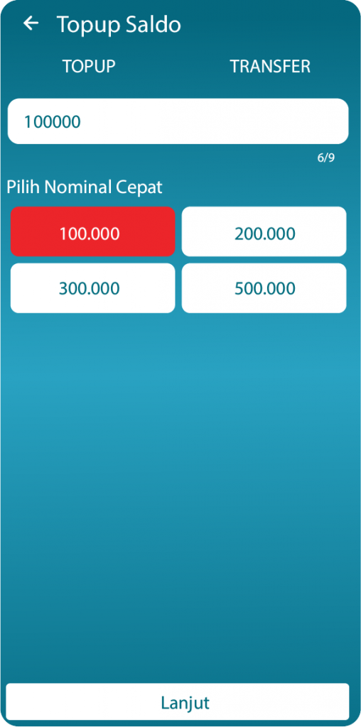Selanjutnya akan muncul tampilan Top Up Saldo, Anda bisa ketik manual jumlah saldo yang ingin Anda tambah atau bisa pakai “Pilih Nominal Cepat” sesuai yang tertera di kolom. Setelah menentukan jumlah saldo, maka klik kolom “Lanjut” di menu paling bawah.
